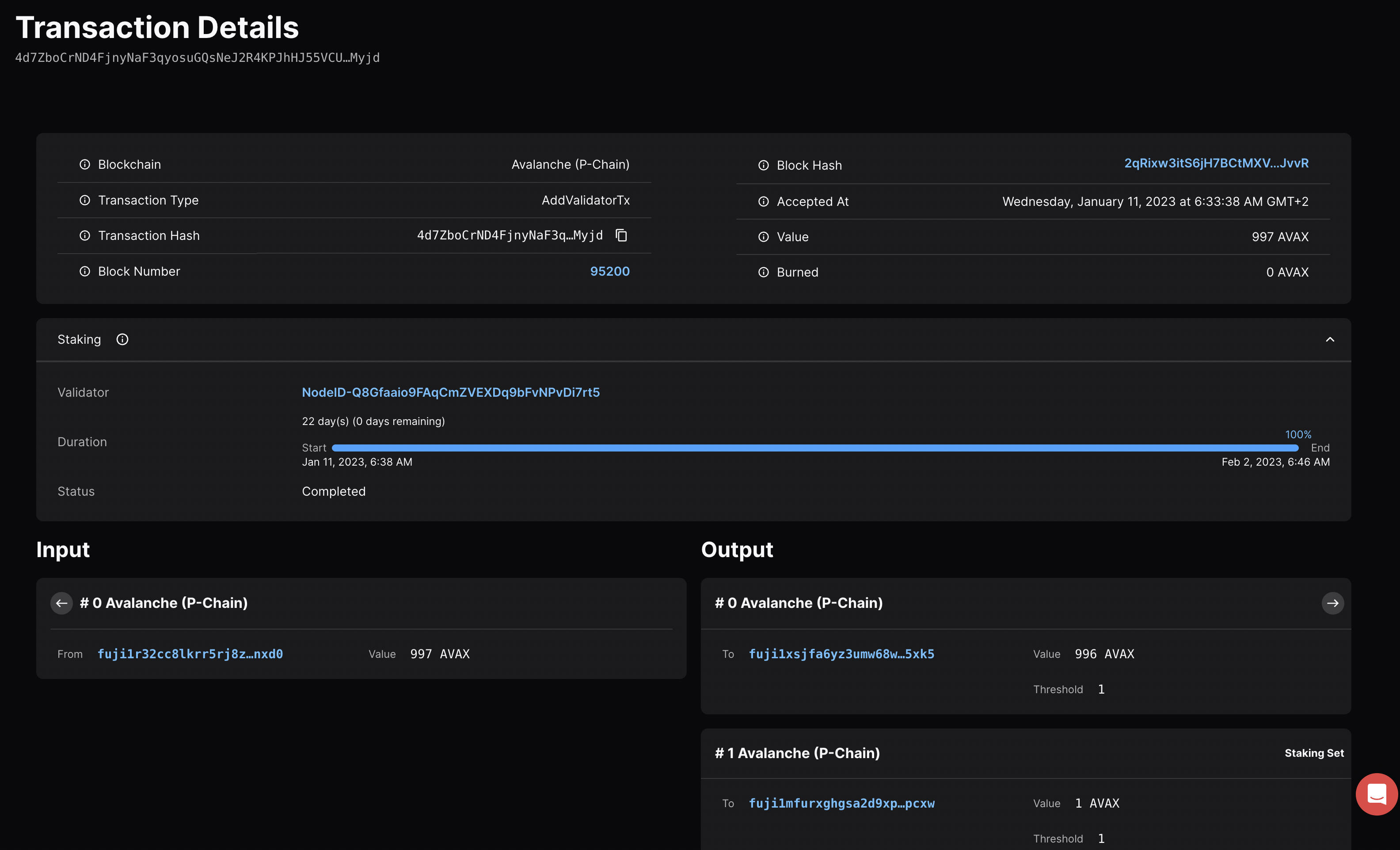 $M$ was chosen as a lower bound for `minimumBlockDelay` values to allow high-performance Avalanche L1s to be able to realize maximum performance and minimal transaction latency. Based on the 1 millisecond value for $M$, $q$ was chosen such that the effective `minimumBlockDelay` value at time of activation is as close as possible to the current target block rate of the C-Chain, which is 2 seconds. $D$ and $Q$ were chosen such that it takes approximately 3,600 consecutive blocks of the maximum allowed change in $q$ for the effective `minimumBlockDelay` value to either halve or double. ### ProposerVM `MinBlkDelay` The ProposerVM currently offers a static, configurable `MinBlkDelay` seconds for consecutive blocks. With this ACP enforcing a dynamic minimum block delay time, any EVM instance adopting this ACP that also leverages the ProposerVM should ensure that the ProposerVM `MinBlkDelay` is set to 0. ### Note on Block Building While there is no longer a requirement for blocks to burn a minimum block gas cost after the activation of this ACP, block builders should still take priority fees into account when building blocks to allow for transaction prioritization and to maximize the amount of native token (AVAX) burned in the block. From a user (transaction issuer) perspective, this means that a non-zero priority fee would only ever need to be set to ensure inclusion during periods of maximum gas utilization. ## Backwards Compatibility While this proposal requires a network upgrade and updates the EVM block header format, it does so in a way that tries to maintain as much backwards compatibility as possible. Specifically, applications that currently parse and use the existing timestamp field that is denominated in seconds can continue to do so. The `timestampMilliseconds` header value only needs to be used in cases where more granular timestamps are required. ## Reference Implementation This ACP was implemented and merged into Coreth and Subnet-EVM behind the `Granite` upgrade flag. The full implementation can be found in [coreth@v0.15.4-rc.4](https://github.com/ava-labs/coreth/releases/tag/v0.15.4-rc.4) and [subnet-evm@v0.8.0-fuji-rc.0](https://github.com/ava-labs/subnet-evm/releases/tag/v0.8.0-fuji-rc.0). ## Security Considerations Too rapid block production may cause availability issues if validators of the given blockchain are not able to keep up with blocks being proposed to consensus. This new mechanism allows validators to help influence the maximum frequency at which blocks are allowed to be produced, but potential misconfiguration or overly aggressive settings may cause problems for some validators. The mechanism for the minimum block delay time to adapt based on validator preference has already been used previously to allow for dynamic gas targets based on validator preference on the C-Chain, providing more confidence that it is suitable for controlling this network parameter as well. However, because each block is capable of changing the value of the minimum block delay by a certain amount, the lower the minimum block delay is, the more blocks that can be produced in a given time, and the faster the minimum block delay value will be able to change. This creates a dynamic where the mechanism for controlling `minimumBlockDelay` is more reactive at lower values, and less reactive at higher values. The global minimum `minimumBlockDelay` ($M$) provides a lower bound of how quickly blocks can ever be produced, but it is left to validators to ensure that the effective value does not exceed their collective preference. ## Acknowledgments Thanks to [Luigi D'Onorio DeMeo](https://x.com/luigidemeo) for continually bringing up the idea of reducing block times to provide better UX for users of Avalanche blockchains. ## Copyright Copyright and related rights waived via [CC0](https://creativecommons.org/publicdomain/zero/1.0/). # ACP-23: P Chain Native Transfers (/docs/acps/23-p-chain-native-transfers) --- title: "ACP-23: P Chain Native Transfers" description: "Details for Avalanche Community Proposal 23: P Chain Native Transfers" edit_url: https://github.com/avalanche-foundation/ACPs/edit/main/ACPs/23-p-chain-native-transfers/README.md --- | ACP | 23 | | :--- | :--- | | **Title** | P-Chain Native Transfers | | **Author(s)** | Dhruba Basu ([@dhrubabasu](https://github.com/dhrubabasu)) | | **Status** | Activated | | **Track** | Standards | ## Abstract Support native transfers on P-chain. This enables users to transfer P-chain assets without leaving the P-chain or using a transaction type that's not meant for native transfers. ## Motivation Currently, the P-chain has no simple transfer transaction type. The X-chain supports this functionality through a `BaseTx`. Although the P-chain contains transaction types that extend `BaseTx`, the `BaseTx` transaction type itself is not a valid transaction. This leads to abnormal implementations of P-chain native transfers like in the AvalancheGo wallet which abuses [`CreateSubnetTx`](https://github.com/ava-labs/avalanchego/blob/v1.10.15/wallet/chain/p/builder.go#L54-L63) to replicate the functionality contained in `BaseTx`. With the growing number of subnets slated for launch on the Avalanche network, simple transfers will be demanded more by users. While there are work-arounds as mentioned before, the network should support it natively to provide a cheaper option for both validators and end-users. ## Specification To support `BaseTx`, Avalanche Network Clients (like AvalancheGo) must register `BaseTx` with the type ID `0x22` in codec version `0x00`. For the specification of the transaction itself, see [here](https://github.com/ava-labs/avalanchego/blob/v1.10.15/vms/platformvm/txs/base_tx.go#L29). Note that most other P-chain transactions extend this type, the only change in this ACP is to register it as a valid transaction itself. ## Backwards Compatibility Adding a new transaction type is an execution change and requires a mandatory upgrade for activation. Im
