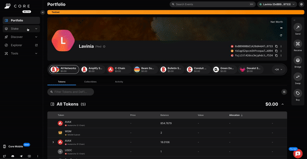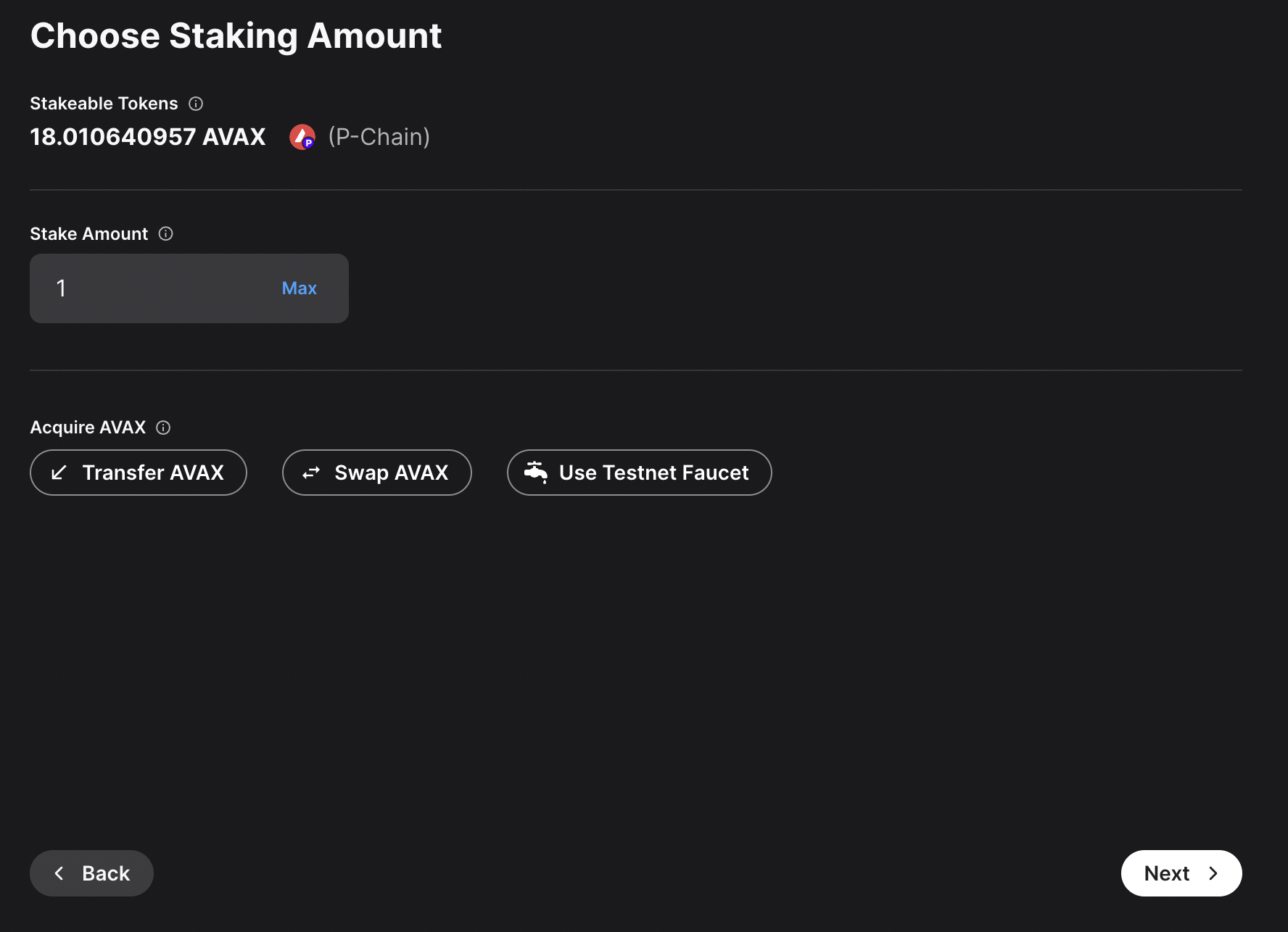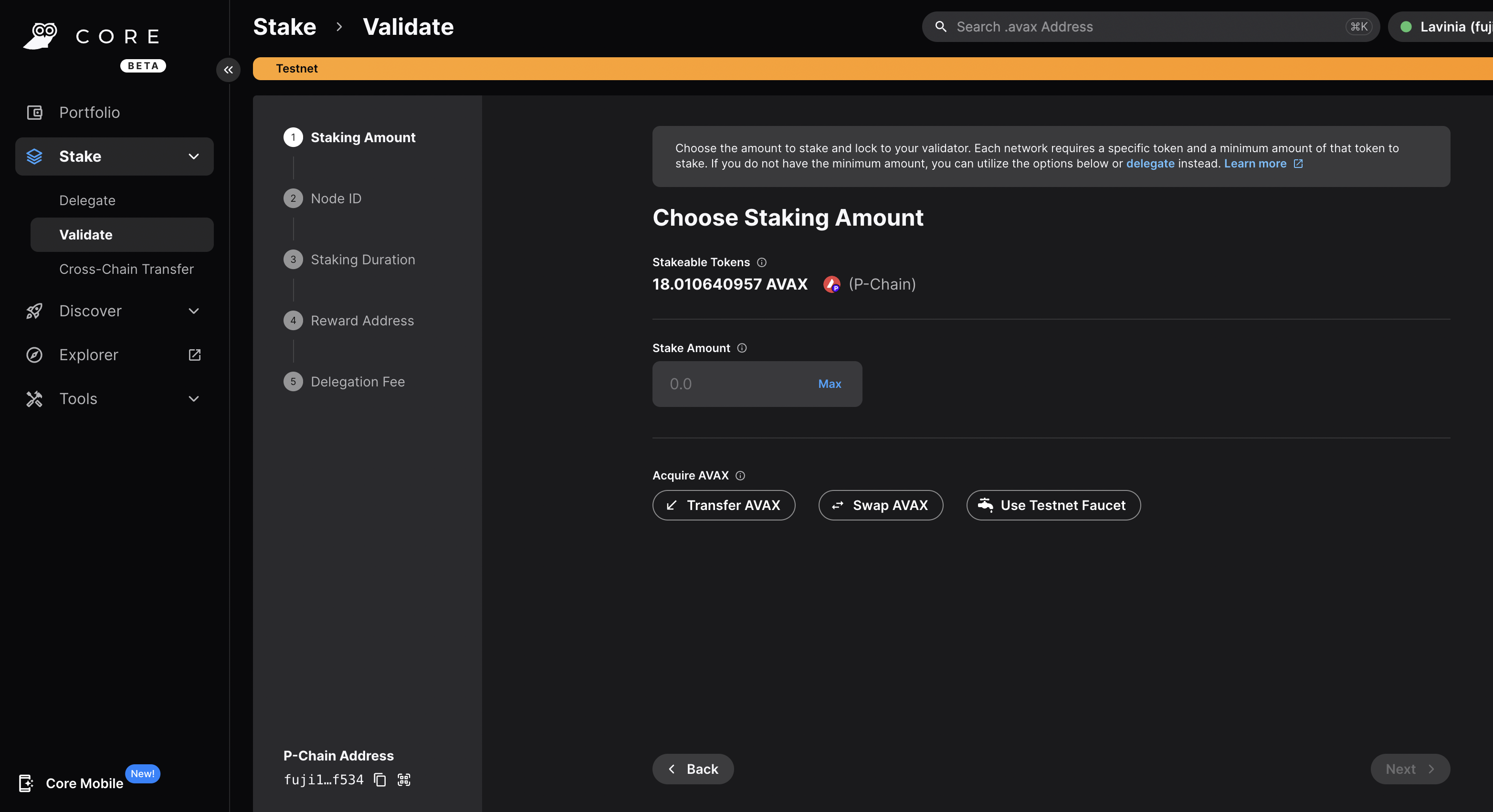 ### Benefits of a Builder Account - **Faucet**: With a Builder Account, you can claim testnet AVAX on the C-Chain and P-Chain right from the Builder Console without the need of a coupon code or holding a mainnet balance. - **Free Managed Testnet Infrastructure**: With a Builder Account, we will provide free managed testnet nodes and ICM relayers for your L1. This infrastructure is not suitable for production use, but it is great for testing and development. # Install Core Wallet (/academy/avalanche-l1/avalanche-fundamentals/04-creating-an-l1/02-connect-core) --- title: Install Core Wallet description: Learn how to install the Core wallet browser extension and create a wallet. updated: 2025-03-13 authors: [owenwahlgren] icon: Wallet --- In this section you will learn how to set up Core wallet and get some testnet AVAX on the P-Chain so you can launch your first L1. ### Download Core Wallet If you don't have Core Wallet installed already, download the Core Extension for Chrome: [Core Wallet Extension](https://chromewebstore.google.com/detail/core-crypto-wallet-nft-ex/agoakfejjabomempkjlepdflaleeobhb) Core is the only wallet that supports issuing P-Chain transactions, so it is not possible to use other wallets such as MetaMask or Rabby. ### Create a Wallet in Core Create a new wallet in Core by clicking the `Continue with Google` or by manually creating a new Wallet. Congratulations! You have successfully set up your Core wallet. # Claim Testnet Tokens (/academy/avalanche-l1/avalanche-fundamentals/04-creating-an-l1/02a-claim-testnet-tokens) --- title: Claim Testnet Tokens description: Learn how to connect Core wallet and claim testnet AVAX. updated: 2025-03-13 authors: [owenwahlgren] icon: Coins --- Connect your Core wallet below to claim testnet AVAX on the C-Chain and P-Chain. With a Builder Hub account, **tokens are automatically sent to your wallet** - no manual claims or coupon codes needed! **Automated Faucet:** Once you connect your wallet with a Builder Hub account, testnet tokens are automatically sent to your wallet when needed. You can also manually request tokens using the buttons above. ## Alternative Faucet If you don't want to create a [Builder Hub Account](https://build.avax.network/login), you can use the external [Avalanche Faucet](https://core.app/tools/testnet-faucet/?subnet=c&token=c) with coupon code `avalanche-academy` or `avalanche-academy25` to get 2 AVAX on the C-Chain. After you have claimed some AVAX on the C-Chain, you can bridge it to the P-Chain using this tool: # Network Architecture (/academy/avalanche-l1/avalanche-fundamentals/04-creating-an-l1/03-network-architecture) --- title: Network Architecture description: Learn about the network architecture of Avalanche and the role of the P-Chain. updated: 2025-03-13 authors: [owenwahlgren] icon: BookOpen --- To create an L1 you need to follow these steps: 1. Create a Subnet record on the P-Chain with the `CreateSubnet` transaction 2. Add one or more chains to the Subnet with the `CreateChain` transaction 3. Convert the Subnet to an L1 and add the initial validators with the `ConvertSubnetToL1` transaction Let's dive into what that means: ## Validators in a Multi-Chain Network Validators are nodes of a blockchain that secure the network by validating the transactions. Each L1 in the Avalanche network has it's own set of validators that is running the `AvalancheGo` client. L1 Creation ## Platform Chain The Platform Chain is the backbone for the native interoperability of the Avalanche network. It is a registry of all validators in the Avalanche network. This includes the validators of the Primary Network (including the C- and P-Chain), as well as all L1s and legacy Subnet validators. For each validator the P-Chain stores the following information: - A unique node ID identifying the validator - A BLS Public Key - The Stake Weight - The Balance of the Validator for the continous interoperability fee following graphic shows a simplified data model of the P-Chain: P-Chain Architecture Builders can create new L1 blockchains in the Avalanche Network by issuing transactions on the P-Chain. The P-Chain runs a special-purpose virtual machine called the [platformvm](https://github.com/ava-labs/avalanchego/tree/master/vms/platformvm). It is not EVM-based and therefore to interact with it you need a compatible wallet like Core wallet. Creating new records for L1 blockchains on the P-Chain is done by issuing transactions like the `CreateSubnetTx`. The P-Chain is secured by the Primary Network validators. L1 validators are syncing the P-Chain, meaning they always have the latest view of the validator set of all blockchains in the Avalanche network, but are not participating in the consensus of the P-Chain. ## Subnets When the Avalanche network was created the architecture included the concepts of Subnets. Subnets are blockchains that were validated by a *subset of the Primary Network validators*. Each Primary Network validator can be a member of multiple subnets, and each Subnet can have multiple validators. Since Primary network validators have to fullfil the Primary Network staking requirements of `2,000 AVAX`, this was also necessary for every validator that was validating a Subnet. There was no option to opt-out of validating the Primary Network. Primary Network